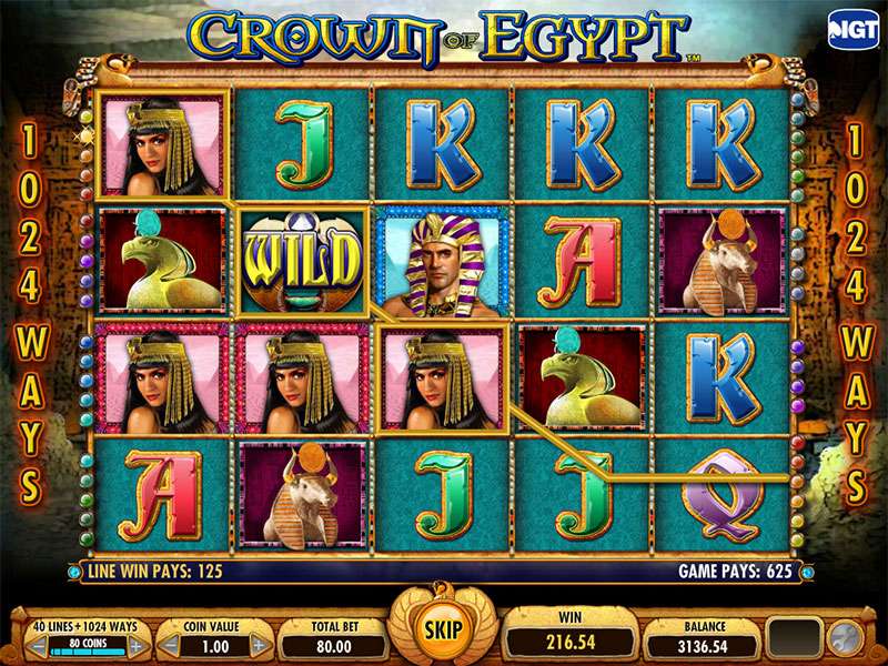 Um recurso exclusivo de todos os slots do IGT são as chamadas 1024 maneiras de vencer-você pode iniciá-lo usando algumas moedas extras. Esta opção pode ser desativada, se necessário. Em geral, o jogo Crown of Egypt consiste em cinco rolos e quarenta linhas de pagamento localizadas nelas. O número de linhas é ajustável e depende de suas preferências e orçamento.