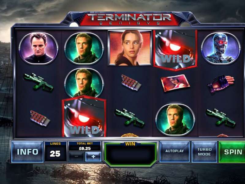 O Terminator Genisys Casino Slot Online oferece aos jogadores um incrível jogo de caça-níqueis com tema de ficção científica que se orgulha da trilha sonora do filme e algumas cenas, mas também absorve alguns ícones cinematográficos dos principais protagonistas. O slot do Terminator Genisys possui cinco rolos e 25 linhas de pagamento. Ter vinte e cinco linhas de jogo significa que existem precisamente 25 maneiras de vencer. Os símbolos que você encontrará, assim como alguns personagens do filme são os seguintes:
