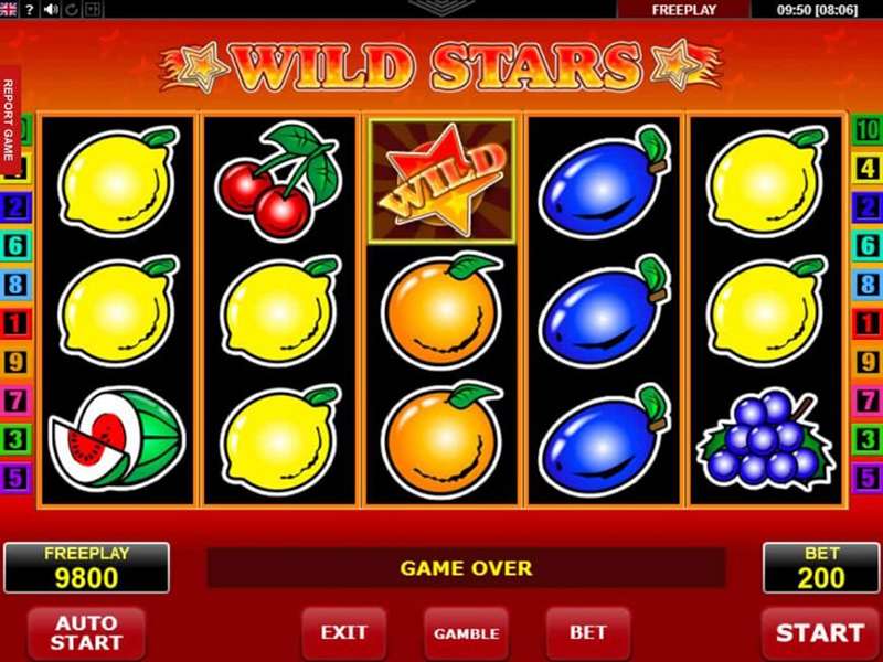 Wild Stars é uma máquina de caça -níqueis com potência amática que leva os jogadores pela memória (para aqueles que estão na indústria de jogos há algum tempo), pois vem com um tema de frutas.