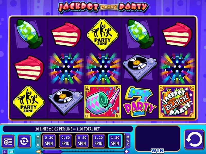 O Jackpot Block Party Free não é realmente um título progressivo, pois pode parecer e é a sua execução regular da produção de slots tradicional. Este é um título divertido para ser apreciado da mesma maneira. O fundo do jogo é um azul profundo, e os símbolos aqui incluem um pedaço de bolo, bola de glitter, deck de discos, um presente lotado, um wallboard de "zona de festa", um pouco de nacho e salsa e o que parece ser uma lava Lâmpada e um número 7 com a festa escrita sobre ela.